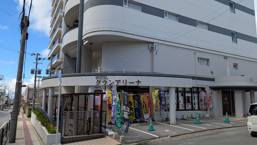 当社事務所は ホテルグランアリーナ 内にございます。 ※ ホテルフロントにてお声がけください。 お車はホテル兼用の専用駐車場がございますので空いている番号の区画へご自由にお停めください。